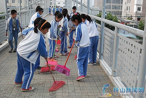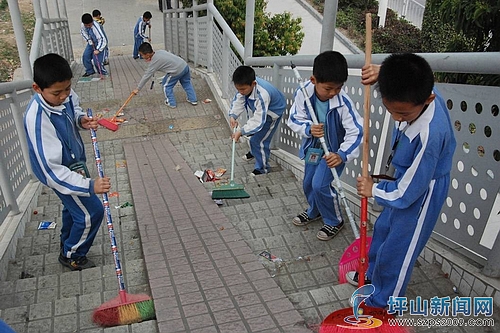 3月3日下午,坪山二小四年级的学生们走上街头,参加“清扫天桥·净化环境”的社会实践活动。活动中,同学们在天桥上或拾捡杂物,或清扫垃圾,或向路人派发爱护环境卫生宣传单。3月4日,该校还启动的“情系灾区心连心”捐款活动上,孩子们也非常踊跃,纷纷参与了募捐活动。