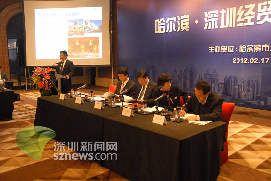 深圳新闻网2月17日讯(记者 傅大伟)2月17日下午,黑龙江省会哈尔滨市在深圳召开了经贸合作恳谈会,会上推介了哈尔滨发展重点领域和108个重大合作项目,这些项目总投资1370亿元,涉及现代农业及绿色食品、工业经济、旅游、商贸物流及商业地产、企业重组等多个方面。这些项目符合国家产业政策导向和省市发展规划,具有良好的发展基础、广阔的市场空间和较高的投资回报率。