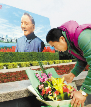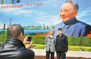 邓小平的画像前总是有那么多市民合影留念。