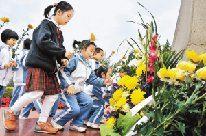 昨日是邓小平同志逝世15周年纪念日,南山区学府小学的孩子们登上莲花山,向邓小平塑像敬献鲜花,表达缅怀之情。 深圳特区报见习记者 何龙 摄