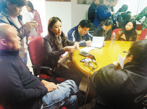 黄女士、店家、罗湖区消委会调解员一起面对面商议如何解决问题。