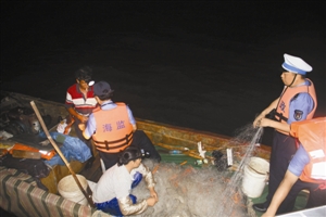 上周,记者跟随深圳渔政支队的执法船出海,15分钟内就发现3艘涉嫌非法捕捞的渔船。船行至后海湾时,一条破旧的小船上,一男一女正将海里的渔网往上拉。据询问获悉,两人为夫妻,汕尾人。见到执法人员,船上妇女情绪激动,用潮汕话大呼自己的船是借钱买的,不能扣押。