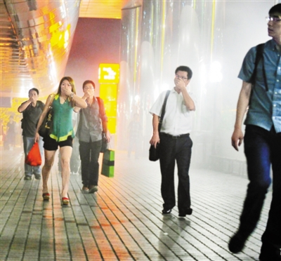 昨日旁晚6时许,在罗湖口岸罗湖商业城发生一起火警,事发后现场冒出大量浓烟,不少市民捂鼻走离开商业城。深圳商报记者 胡嘉伟 摄