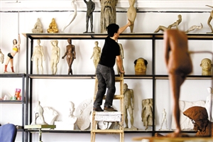 空余时间几名艺术家一起聊天讨论艺术创作。