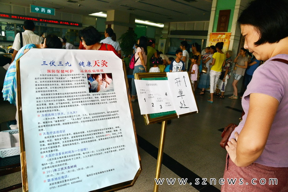昨天是闰中伏的第一天,一大早深圳市第二(福田)中医院的大厅里就挤满了来做“天灸”(三伏灸、三伏贴)的人。