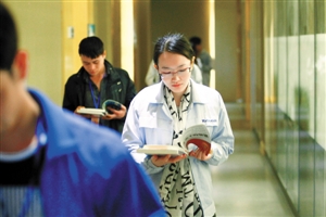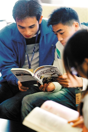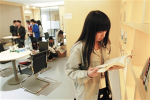 深圳新闻网坪山讯(记者 肖兵峰 通讯员 肖海强)走进位于坪山大工业区的一家台资企业,郁郁葱葱之中可见一番忙碌的景象。上午十点多钟,记者绕过食堂,走进位于二楼的青工书屋,宽敞的书房被橘黄色的灯光环抱,两米多高的书架上,励志、军事、修养等等9类书籍摆放整齐,柔软的沙发上,几名女孩休闲放松地坐着,1991年出生的许佳正在看一本中英文双语的书,英语专业毕业的她在公司物流部工作,利用调休时间,她和同事一起来这里看书,“相比逛街,这样要充实得多,工作后总感觉知识储备不够用,要找机会给自己充充电。”许佳介绍,“每到晚上七八点,这里都坐满了看书的同事。”