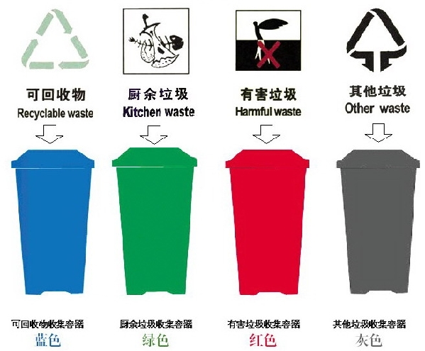 居民生活垃圾分为可回收物、厨余垃圾、有害垃圾、其他垃圾四类。市民可在分成上述四类的基础上进行细分。