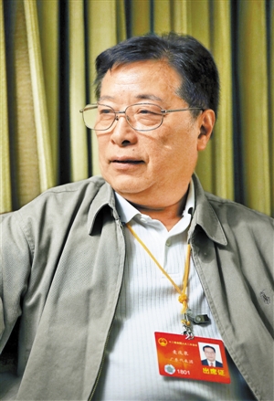 昨日,全国人大代表麦庆泉接受记者采访。 深圳商报特派记者 施平摄