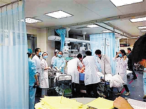 3月1日下午5点10分,一辆120急救车拉响了警报呼啸驶入了市二医院。正好是交接班时间,急诊科中班和晚班医护人员听到警报声后都不约而同地跑到了救护车停靠的地方。