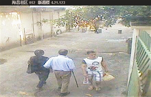 视频记录下嫌疑人(右一)拿着赃物出门。