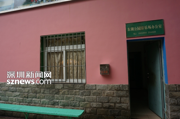 8月20日,深圳新闻网记者来到了东湖公园,从北门进入,在距离公园管理处不到200米的地方就是儿童游乐场。记者根据网友提供的图片找到了游乐场中的海盗船项目。由于下着下雨,在游乐场游玩的孩子并不多,大部分游乐项目都静悄悄的。海盗船也不例外,设备控制室里没有工作人员。