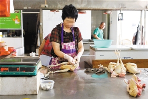 谭先生介绍,在美国、欧盟等发达国家,市场上可以买到的鸡、鸭、鹅,都是经过政府认定的屠宰场宰杀后以冰鲜品的形式出售。但考虑到消费习惯有所不同,我市实行的是生鲜上市,即家禽集中屠宰,用冷冻车运输到终端档口后,置于冷柜中,温度保持在0℃~4℃,这样既保障鸡肉的新鲜,又助于控制禽流感等疫病。
