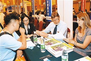 日前在深圳举行的国际教育展,吸引了大批有出国意愿的学生前往咨询。 深圳商报记者 陈广琳 文/图