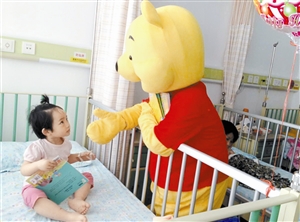 社工组织活动,让维尼熊慰问小朋友。 深圳特区报记者 盛佳婉 通讯员曹海燕 摄