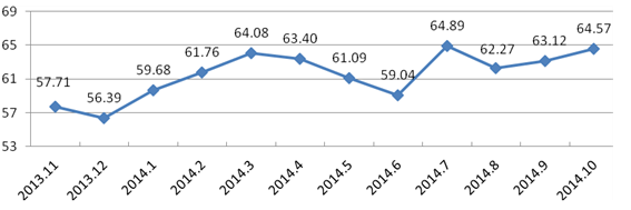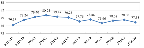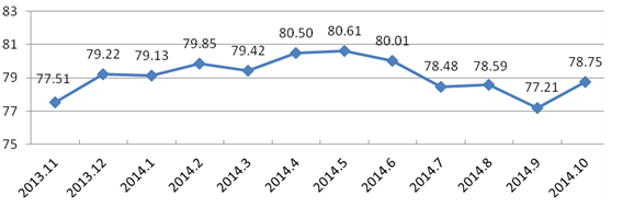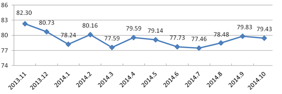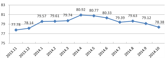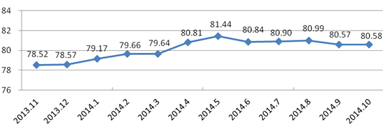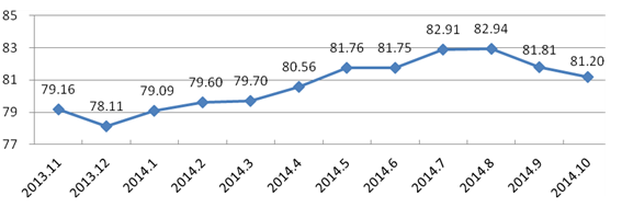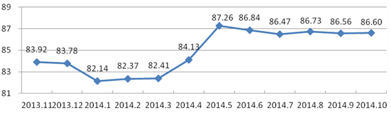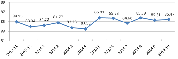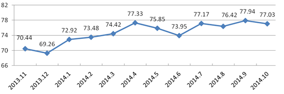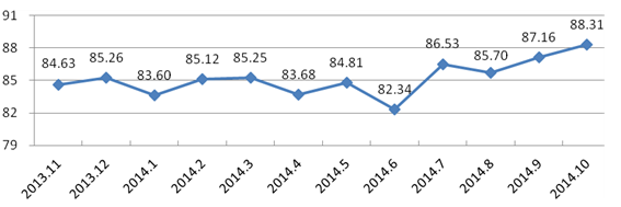 图1:2013年11月-2014年10月份深圳市城市交通文明指数