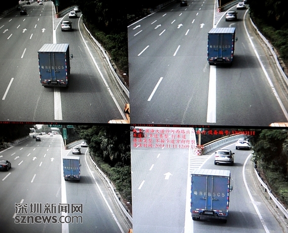 自动转拍摄设备能够清晰记录机动车压实线变道行驶违法行为过程。