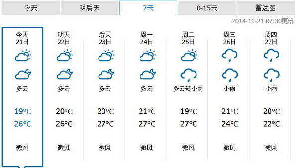 记者昨日在市人居环境委官方网站上查询空气质量,从近三日情况来看,部分监测点的空气指数类别上出现了“轻度污染”,污染物有细颗粒物、臭氧,还有可吸入细颗粒物污染物。随着冷空气继续减弱,气温继续回升,未来一周能见度逐渐转差,20~25日我市多云,可见阳光,气温回升,风力较弱,能见度逐渐转差,部分时间有轻微到轻度灰霾。
