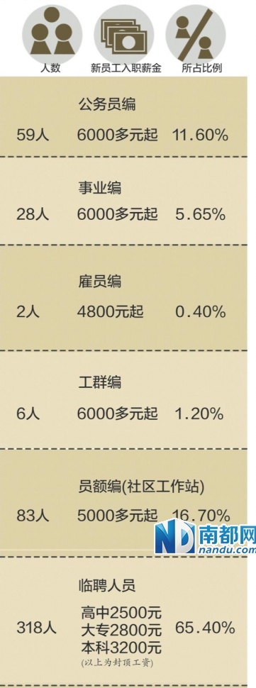 就记者调查深圳某街道的实际情况来看,临聘人员占全员的65.4%.新入职的临聘人员的工资是新入职在编人员工资50%左右。随着时间的推移,在编人员的工资会有增长,而临聘人员却是不会增长的,且在现有的工资数额下还要扣社保及公积金,实际到手的工资更低。政府其他职能部门也存在这个情况。因此,面对这种待遇差距,雇员担心的是改革将他们变为临时工。