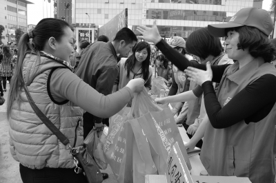 坑梓秀新金沙三个社区服务中心(党群社区服务中心)整合商界资源为劳务工提供返乡爱心大礼包。