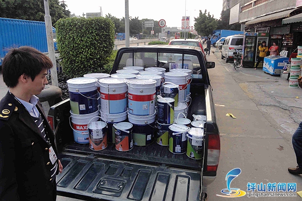 3月16日,市市场监管局坪山分局监管三科根据举报,查获一起销售假冒油漆产品案。