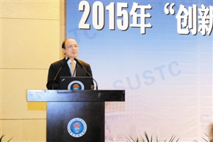 陈十一以《改革创新,执著梦想》为题向与会代表作演讲。“南科大是实现我的中国梦、教育梦的地方。”他说,遵循教育规律,扎根中国大地,南科大就有希望办成中国的世界一流大学。