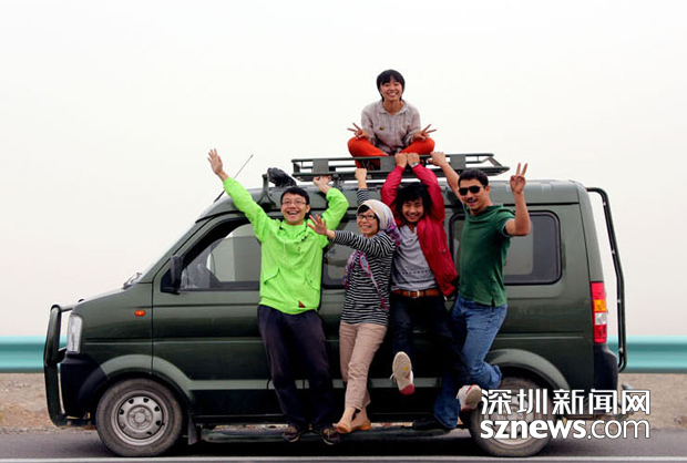 维吉达尼最初的5人团队,贾茜(车顶上的女孩)、刘敬文(左一)、张萍(左二)、贾君(右二)麦合穆提·吐尔逊。