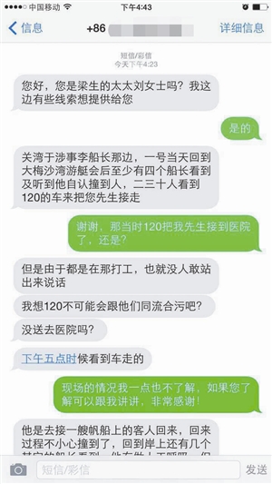 梁振涛的妹妹梁蓓蕾说,目前哥哥的死亡原因家属和亲朋已经基本确定是人船相碰,而且警方称已经找到涉事游艇。但是,家属却无法进一步了解情况。