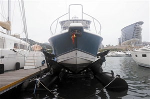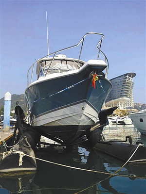 昨日下午,在盐田区大梅沙湾游艇会,王晓东将前来采访的记者带到涉事的“138115”号钓鱼艇前。该钓鱼艇已经被架离水面,钓鱼艇的螺旋桨也已经被卸掉。