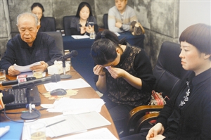 3月4日,在死者家属召开的记者会上,死者的妻子由于悲愤,伤心落泪。