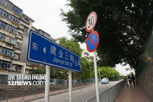 以竹林酒店为界,建业三街往宝能工地的路口设了车辆出入的闸门,路两边集中停放小汽车和货车,仍保持空出两个车道的宽度。