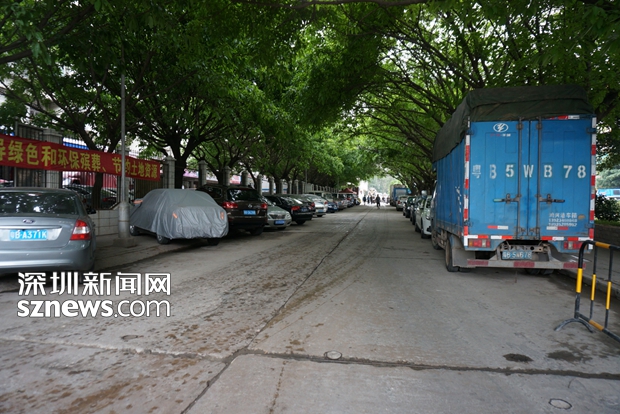 往宝能工地的闸门内侧道路车辆停放较为规整