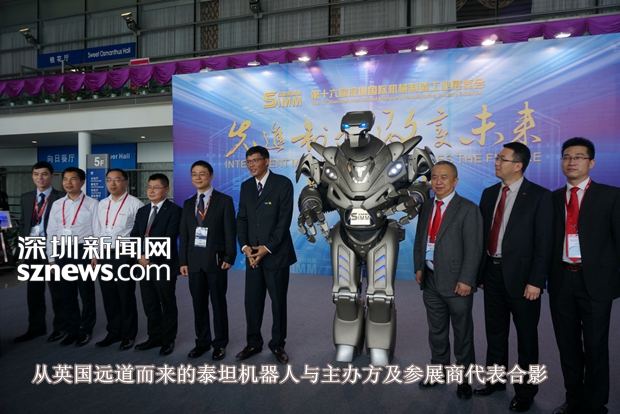 在开幕当天,主办方从英国请来的泰坦机器人迈着敏捷的步伐走上主席台与嘉宾合影,也呼应了深圳机械展的机器人主题——今年有超过300多家从事机器人、系统集成、自动化专业设备和传动控制行业的展商,包括世界机器人领导品牌日本发那科和德国库卡,意大利柯马、日本三菱、那智不二越、中国广数、巨轮、华数等。