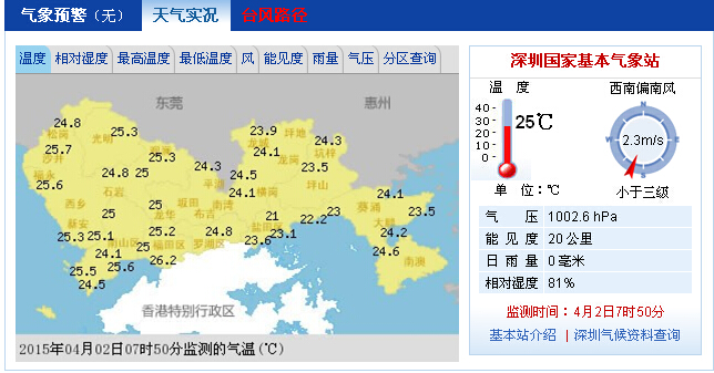 另外,今年04号台风“美莎克”(超强台风级)昨日下午位于菲律宾以东的西北太平洋洋面上,距离深圳约2700公里,预计将在5日夜间掠过菲律宾岛进入南海,然后强度迅速减弱,清明假期对深圳无直接风雨影响。