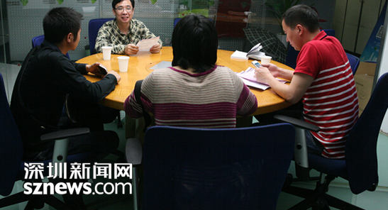 3月31日下午,陈东文与购车人李先生、郑先生、王小姐会面,商量法律维权事宜。陈东文一一审读了三份购车合同,并根据实际情况,从法律角度为三位购车人提出了不同建议。