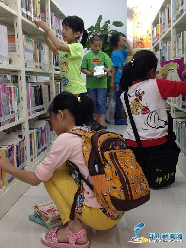 在坪山图书馆的少儿阅读区,分类明确、满目琳琅的图书让小朋友们欣喜不已。他们表示,虽然这是他们第一次来图书馆,但是他们已经爱上了这里。