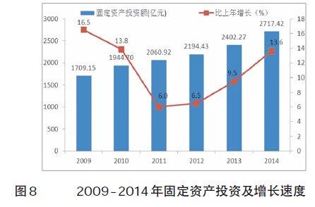 全年完成固定资产投资额2717.42亿元,比上年增长13.6%。其中,房地产开发项目投资1069.49亿元,增长22.0%;非房地产开发项目投资1647.94亿元,增长8.8%。