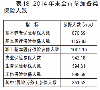 年末全市有870.69万人参加了基本养老保险,942.18万人参加了失业保险。