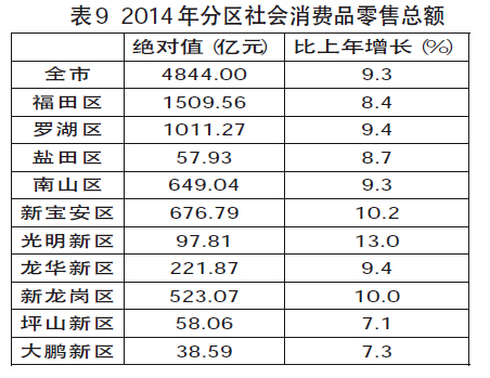 全年社会消费品零售总额4844.00亿元,比上年增长9.3%。其中,批发和零售业零售额4321.54亿元,增长9.3%;住宿和餐饮业零售额522.46亿元,增长9.1%。在社会消费品零售总额中,限额以上批发和零售业零售额3203.46亿元,增长9.0%,占社会消费品零售总额66.1%。