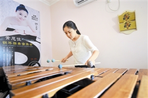 黄思佳在个人独奏音乐会上表演打击乐。学习打击乐是她最期盼的事。她说,不管学习、生活上遇到什么烦恼,只要一想到第二天有琴练,心情就不自觉地好起来。