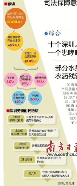 “今年劳模评选,我们尤其注重深圳的产业转型升级背景,所以一线技术人员和科技创新人才比例有所加重。”深圳市劳模评选表彰工作领导小组办公室副主任王鸿利介绍说,深圳市从1983年开始评选劳模,2011年开始评选五一劳动奖章,截至目前,深圳市共有各级各类劳模2300多名。
