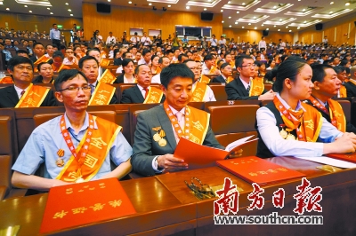 4月29日上午,深圳召开庆祝“五一”劳动节大会,各级劳模汇聚一堂。资料图片
