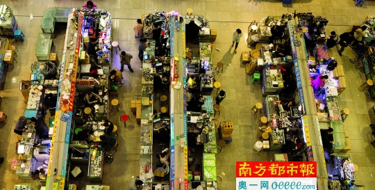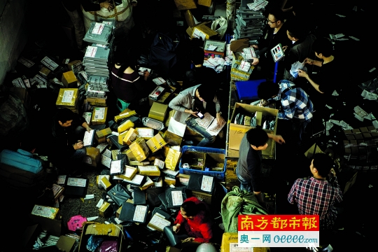 午夜时分,某通讯商城后门的空地上,大量包裹在这里被分类派出。便捷高效的快递服务,也是华强北的一大优势。