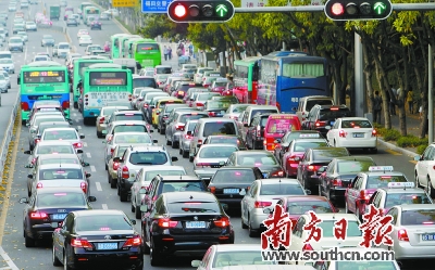 深圳限牌后新车销量大幅下降,但车辆密度仍居全国第一。图为上步路下班高峰期车多缓行。鲁力 摄