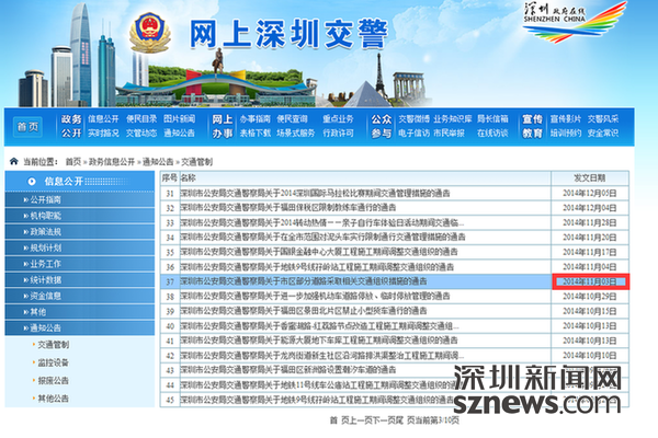记者随后查阅深圳市交警局官网发现,本次通告发布的时间为5月4日,而在2014年10月30日,市交警局也曾发布一条跟本次相同标题,且内容相同的通告,只是没有像这次一样引起广泛关注。