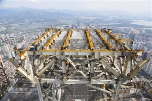 根据施工方中建一局介绍,此后,塔冠将继续安装角部桁架、防风围梁、照明阁楼层支撑等部位,预计将于8月份完成塔冠钢结构全部施工,届时平安金融中心将再次刷新深圳高度。