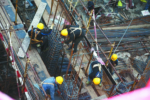 平安项目纵向高度目前已完成334米,超过了设计总高度的一半。其中钢结构外框也达到200多米,核心筒内楼板等横向施工也已进行到30多层。此时正是工程主体结构快速施工阶段,不同工作的作业面既繁杂又分散,这就对管理现场的工长提出了极高的要求。每个工长除了白天要细致地管理多个楼层和工序,晚上还得值班打混凝土。