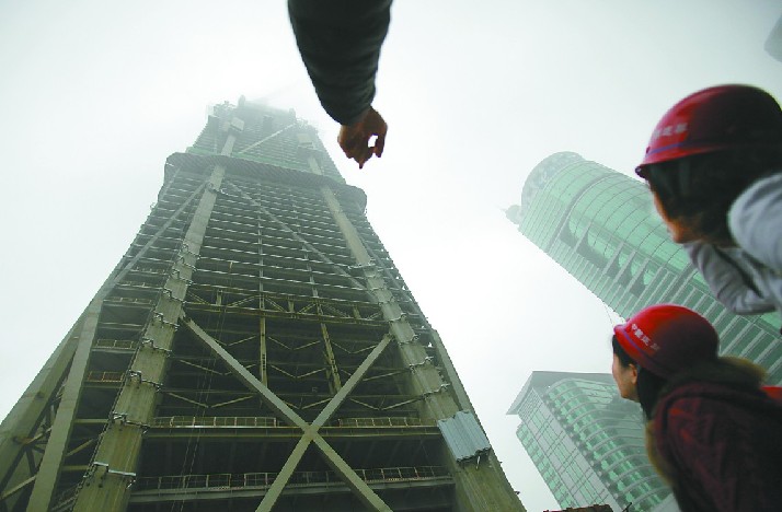 平安金融中心楼体高度达到567米 “皇冠”重1500吨