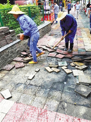 针对网帖反映的上述问题,民治街道办事处十分关注和重视,“网帖是5月21日发布的,我们分管领导当天就带队去了现场。”民治街道办事处工作人员告诉记者,据了解地砖破损是因为现场一些临街商铺人员,擅自切断人行道与机动车道中间护栏后,经常把机动车辆开上人行道反复碾压所致。