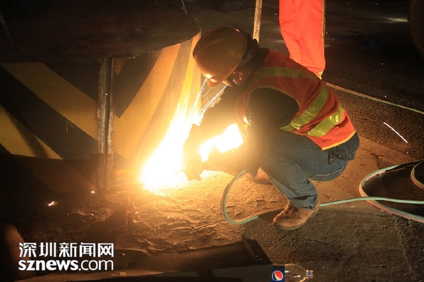 据介绍,深圳市路桥建设集团正在负责拆除南投检查站的拆除工作。项目副经理曹晓川告诉深圳新闻网记者,今晚包括同乐、布吉和南头检查站的岗亭和安全岛将在同一时间拆除。