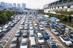 2014年9月5日布吉联检站,草埔地铁站路段,马路犹如巨大停车场,车辆缓慢前行。